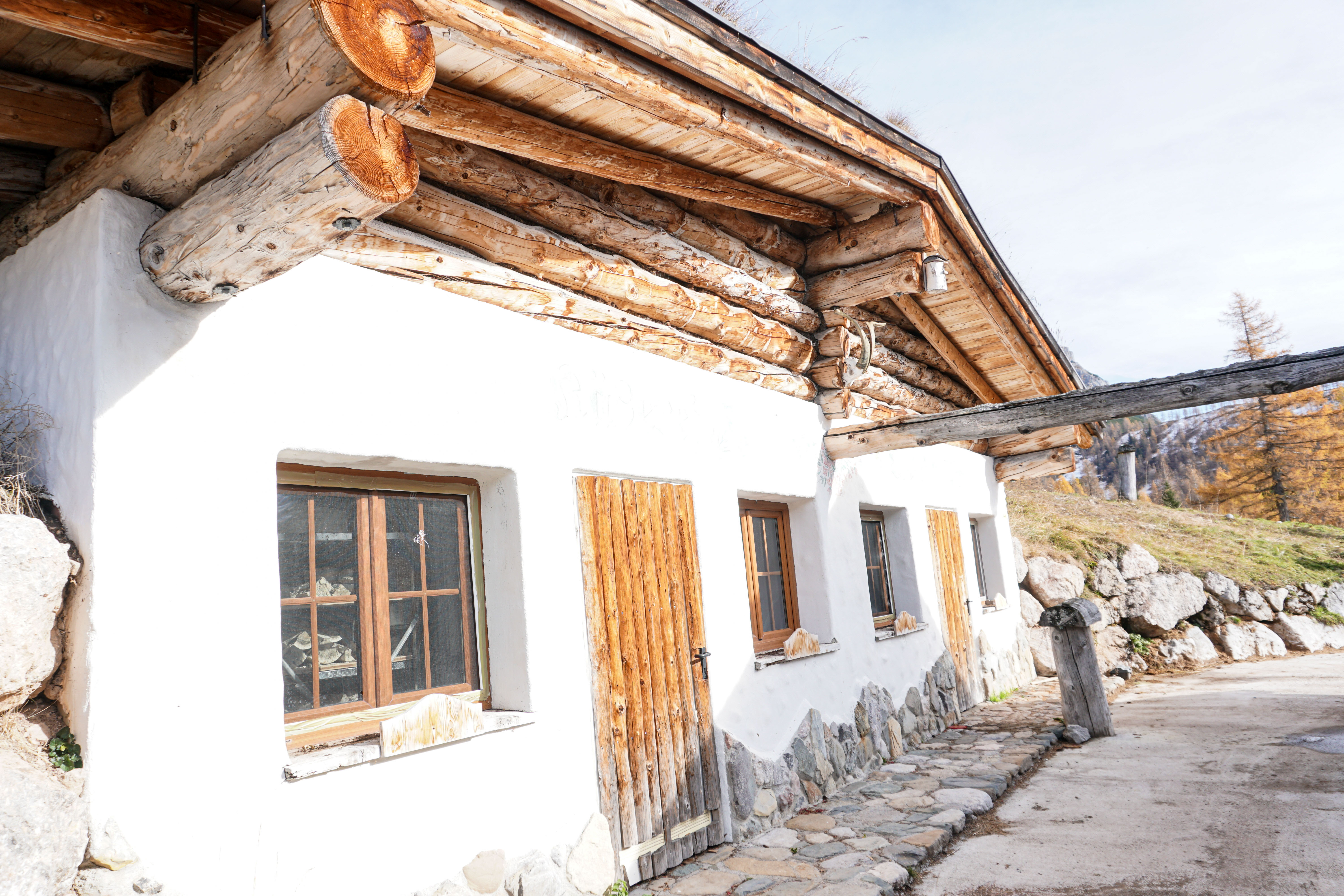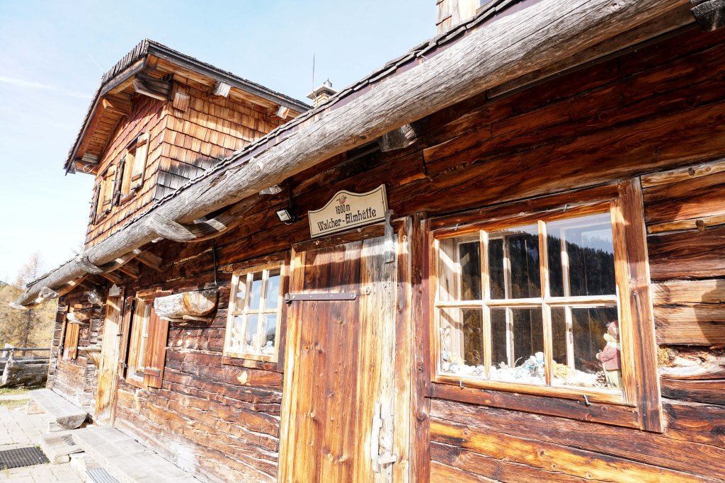 Anschließend biege ich in Richtung Walcheralm ab, die ich auch bereits noch wenigen Minuten erblicken kann. Zeit für eine kleine Rast. Da es schon spät im Jahr ist und die Alm natürlich schon geschlossen hat, genieße ich mein mitgebrachtes Schinkenweckerl. Tipp: Im Sommer kann man hier besonders schmackhaften Käse aus der eigenen Käserei genießen.