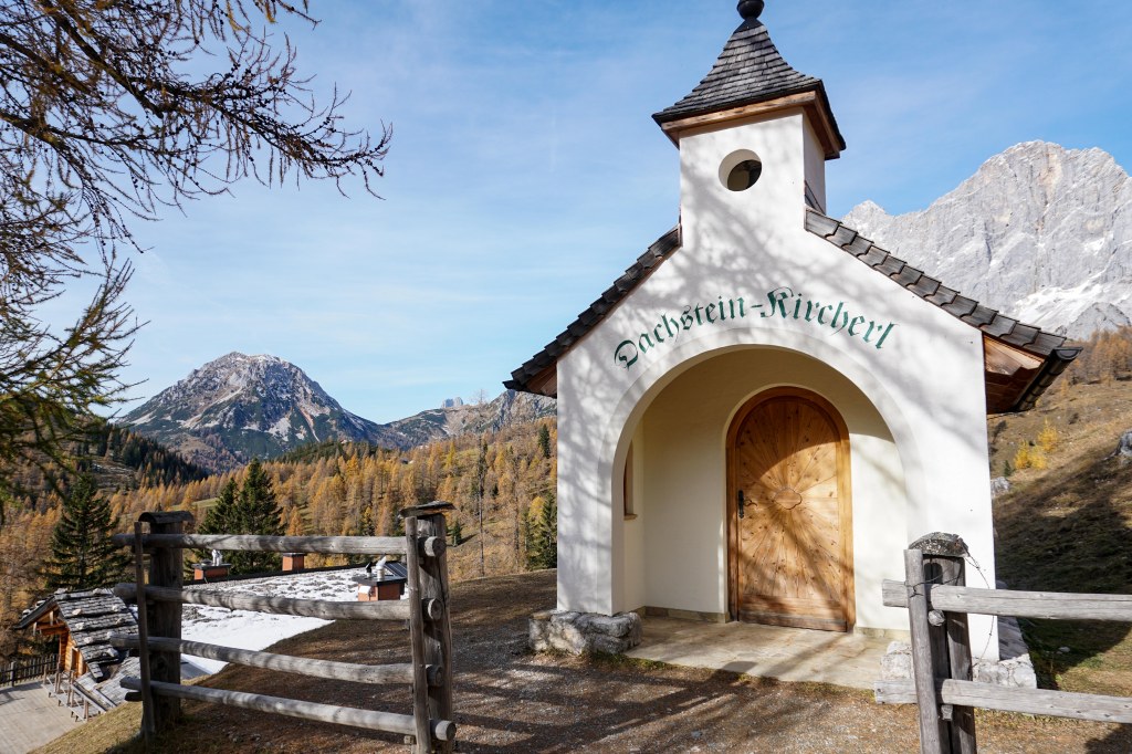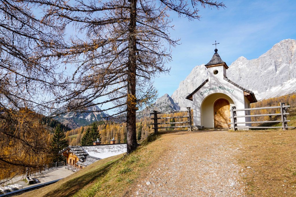 Der Ausblick auf das Dachsteinkircherl und den dahinterliegenden Dachstein ist atemberaubend schön.