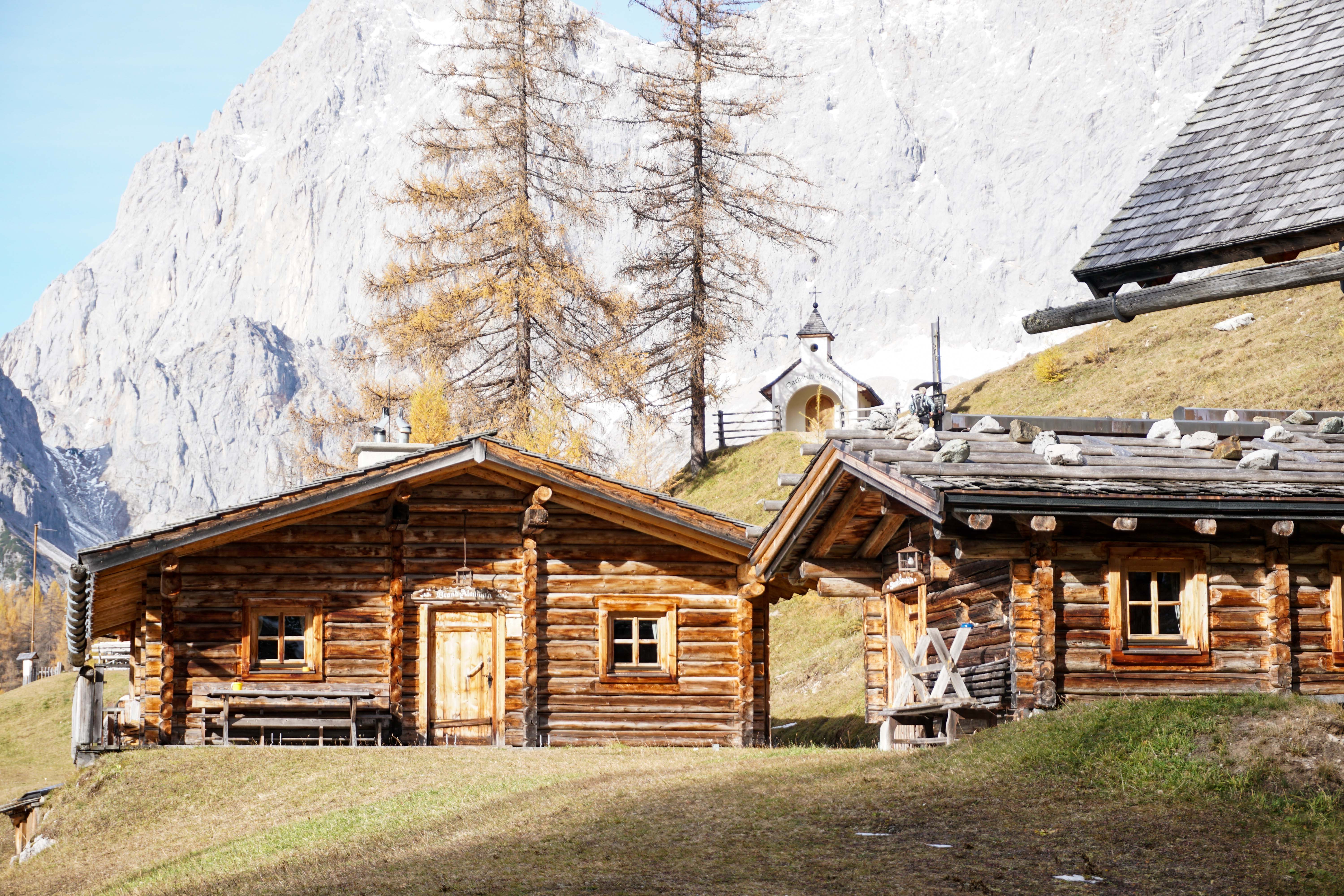 Almhütte Nummer 4 ist die Brandalm. Tipp: im Spätherbst könnt ihr euch alljährlich im Rahmen der Krapfenwoche ganz besonders kulinarisch belohnen. Lohnenswert ist auch der kurze Abstecher hinauf zum idyllischen Dachsteinkircherl (ein herrliches Fotomotiv). Ein kleines Stück vor dem Kircherl gibt’s dann auch noch eine Bergsteiger-Gedenkstätte.